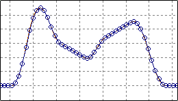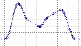 Das Bild zeigt das Ergebnis der Punkteverteilung nach der erfolgten Optimierung. Diese Kurve mit 50 Stützpunkten hat die gleiche Qualität des Bewegungsverlaufes wie eine Kurve mit 134 gleichverteilten Stützpunkten.
