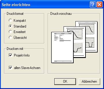 - Geben Sie an, in welcher Art Sie die Daten einer Slave-Achse drucken